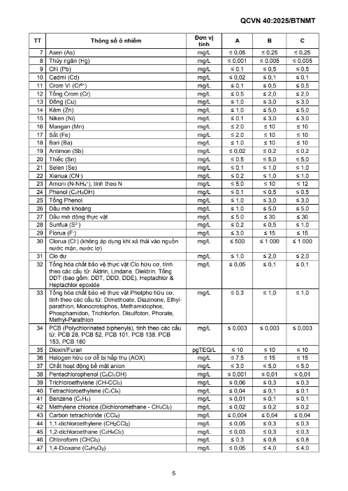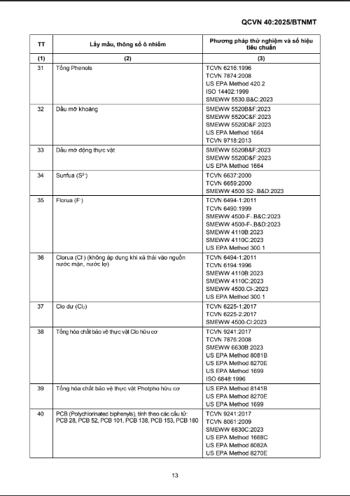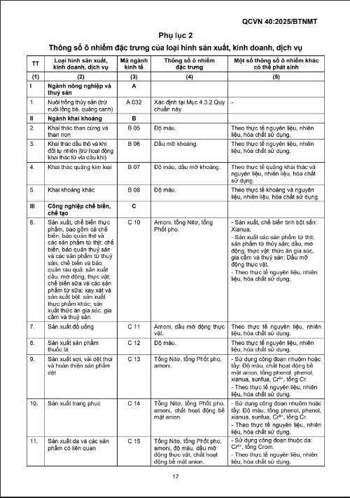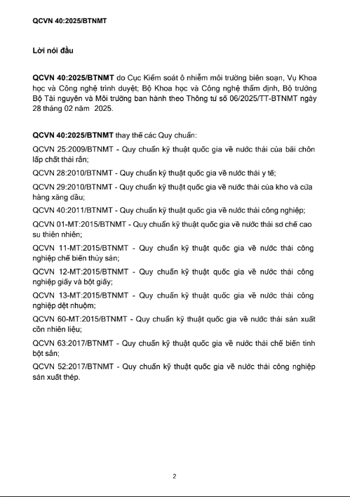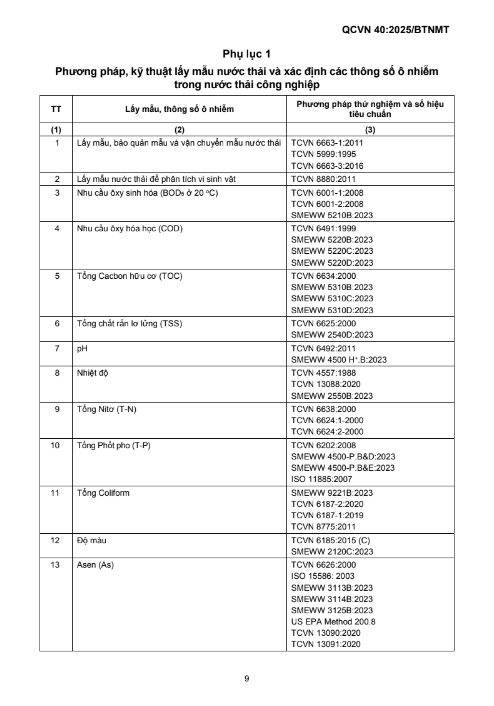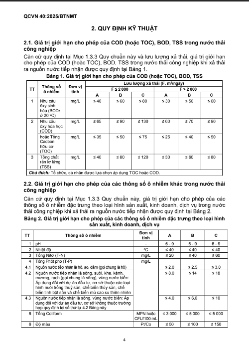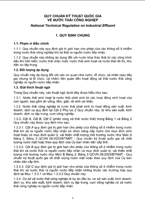 QUY CHUẨN KỸ THUẬT QUỐC GIA VỀ NƯỚC THẢI CÔNG NGHIỆP