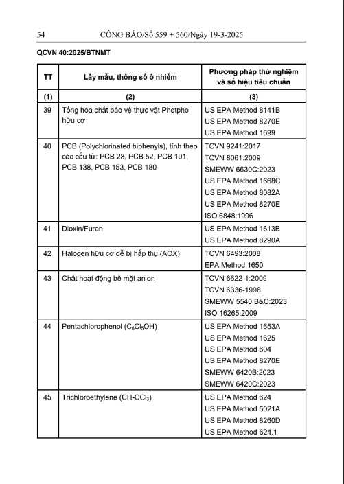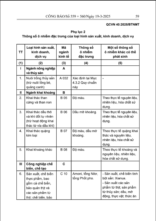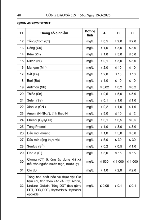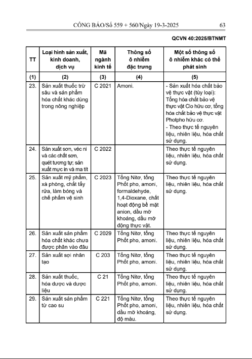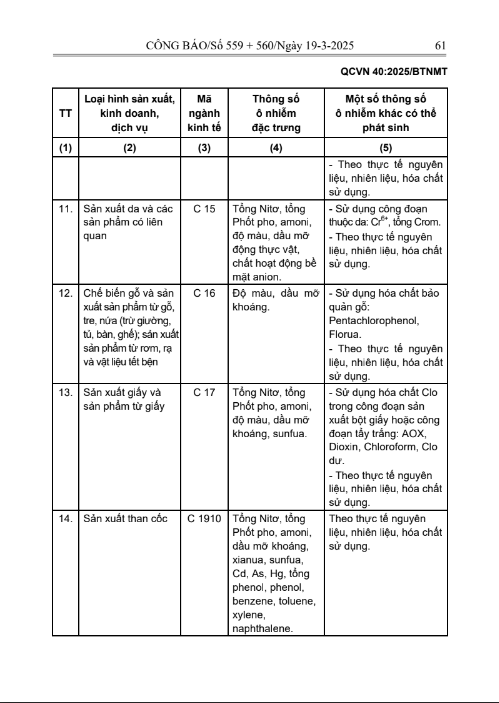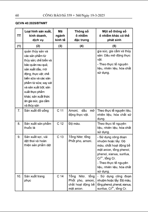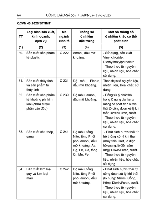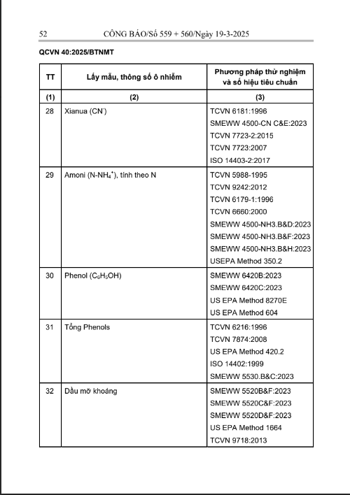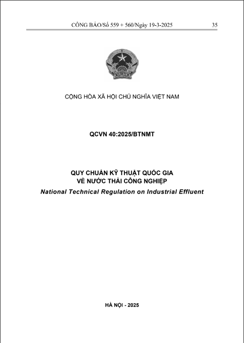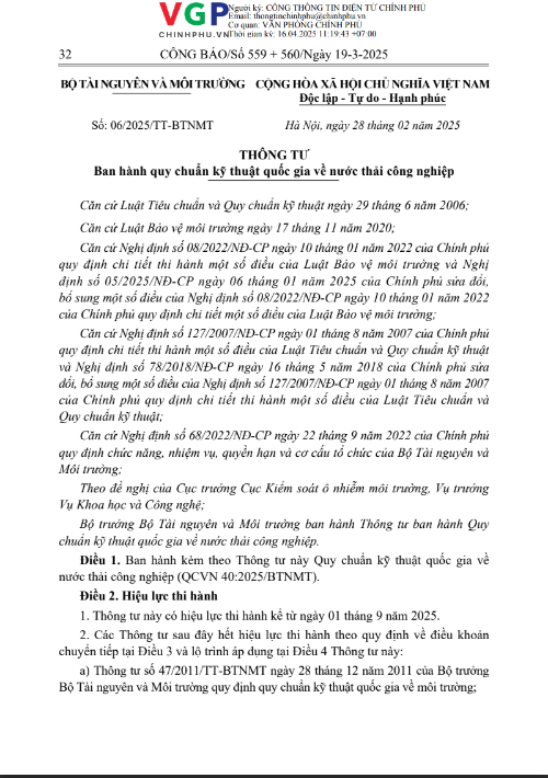 THÔNG TƯ BAN HÀNH QUY CHUẨN KỸ THUẬT QUỐC GIA VỀ NƯỚC THẢI CÔNG NGHIỆP