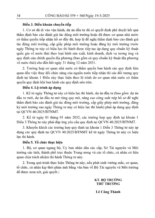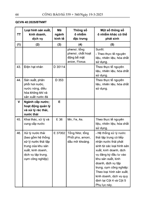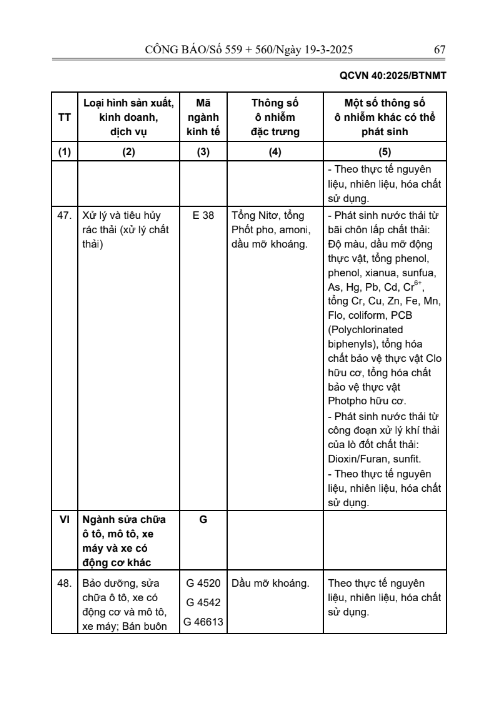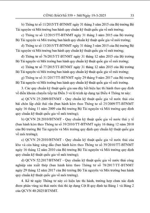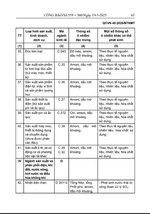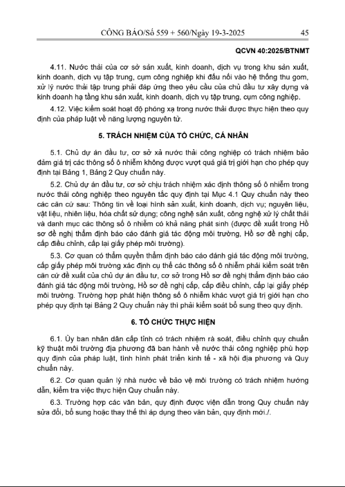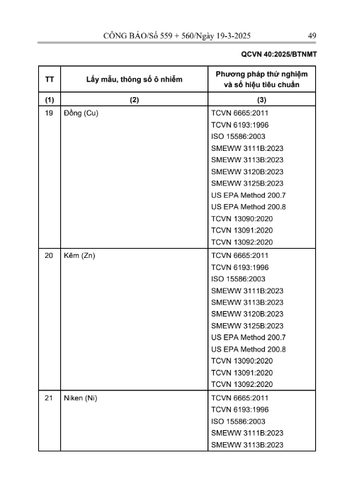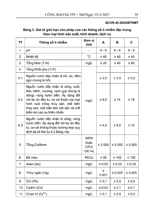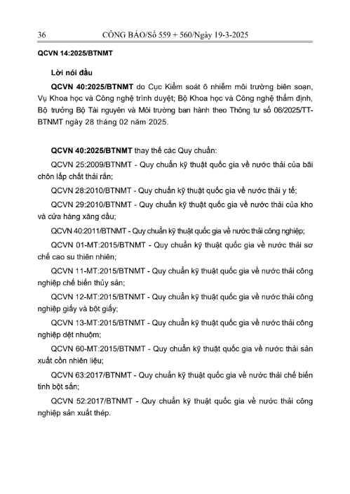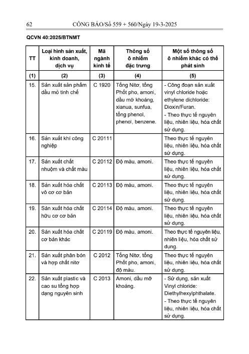 THÔNG TƯ BAN HÀNH QUY CHUẨN KỸ THUẬT QUỐC GIA VỀ NƯỚC THẢI CÔNG NGHIỆP