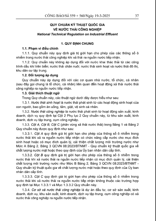 Quy Chuẩn Kỹ Thuật Quốc Gia Về Nước Thải Công Nghiệp