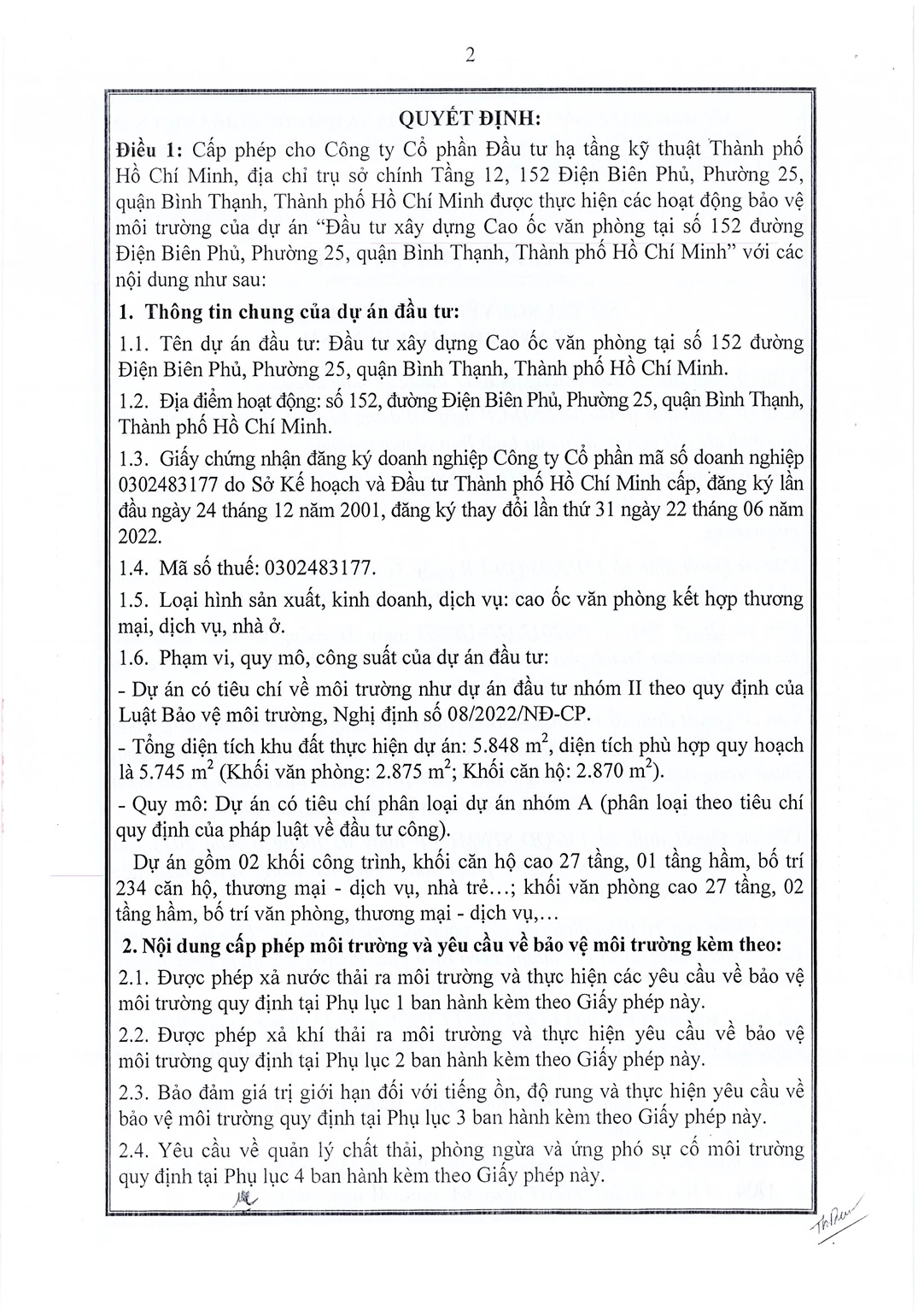DỰ ÁN ĐẦU TƯ XÂY DỰNG CAO ỐC VĂN PHÒNG TẠI SỐ 152 ĐƯỜNG ĐIỆN BIÊN PHỦ, QUẬN BÌNH THẠNH, TP. HỒ CHÍ MINH