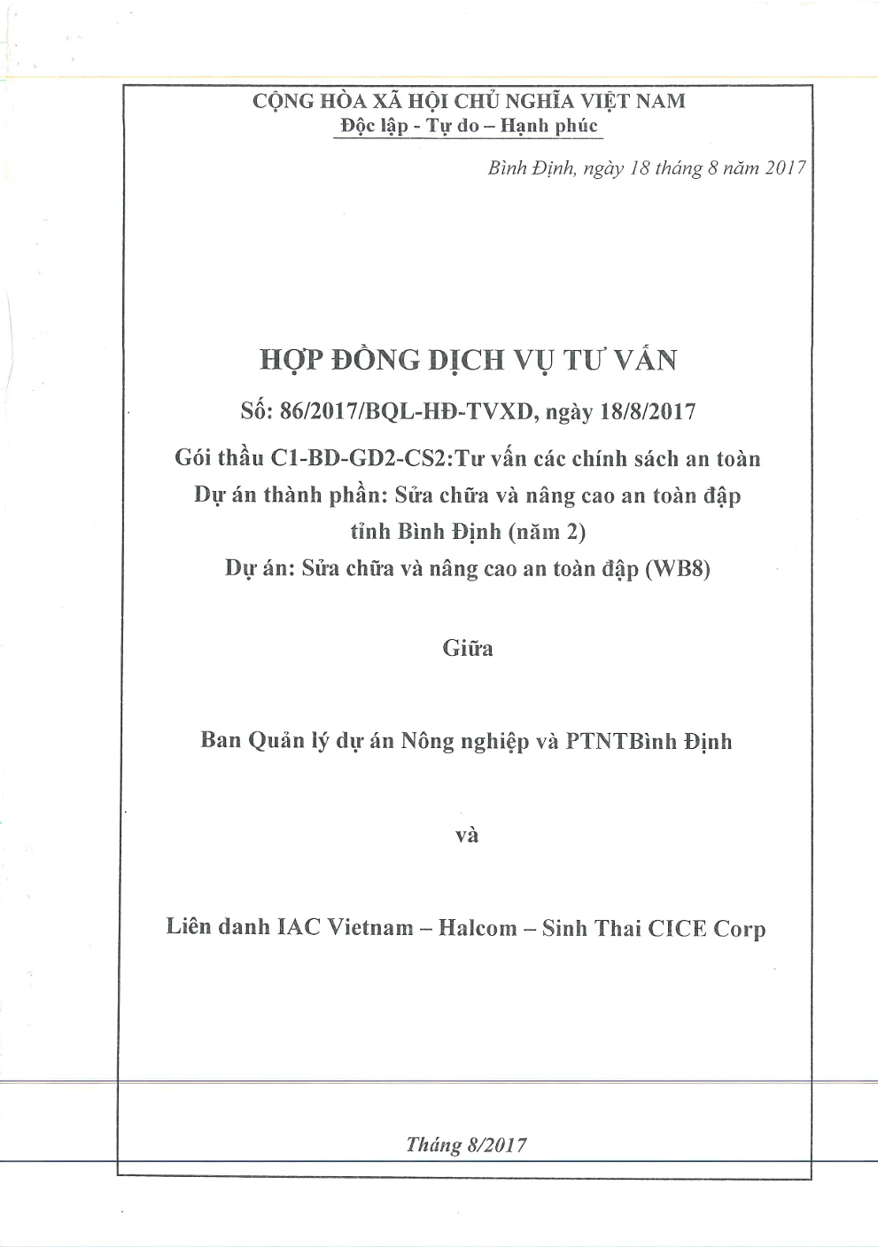 DỰ ÁN SỬA CHỮA VÀ NÂNG CAO AN TOÀN ĐẬP (WB8)