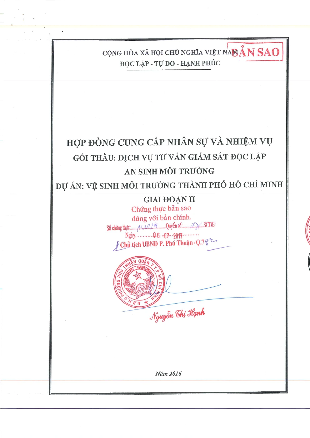 DỰ ÁN VỆ SINH MÔI TRƯỜNG THÀNH PHỐ HỒ CHÍ MINH GIAI ĐOẠN II