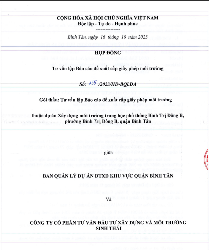 HỢP ĐỒNG DỰ ÁN XÂY DỰNG MỚI TRƯỜNG TRUNG HỌC CƠ SỞ BÌNH HƯNG HÒA B, PHƯỜNG BÌNH HƯNG HÒA ,QUẬN BÌNH TÂN
