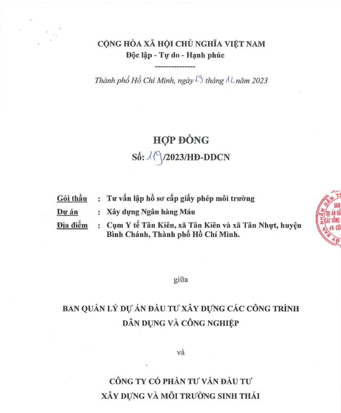 HỢP ĐỒNG DỰ ÁN XÂY DỰNG MỚI BỆNH VIỆN TRUYỀN MÁU HUYẾT HỌC (CƠ SỞ 2)