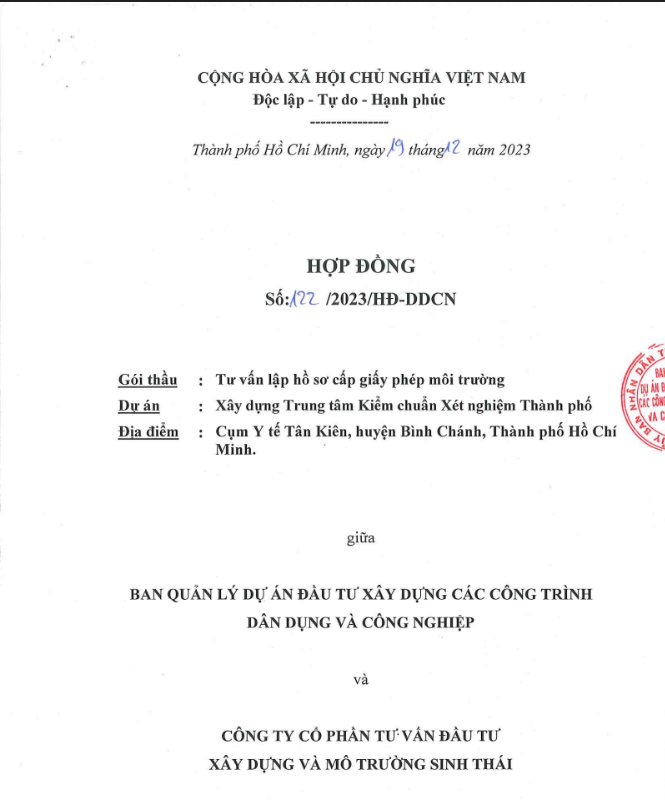 HỢP ĐỒNG DỰ ÁN XÂY DỰNG TRUNG TÂM ĐIỀU TRỊ KĨ THUẬT CAO CỦA BỆNH VIỆN NHI ĐỒNG 2