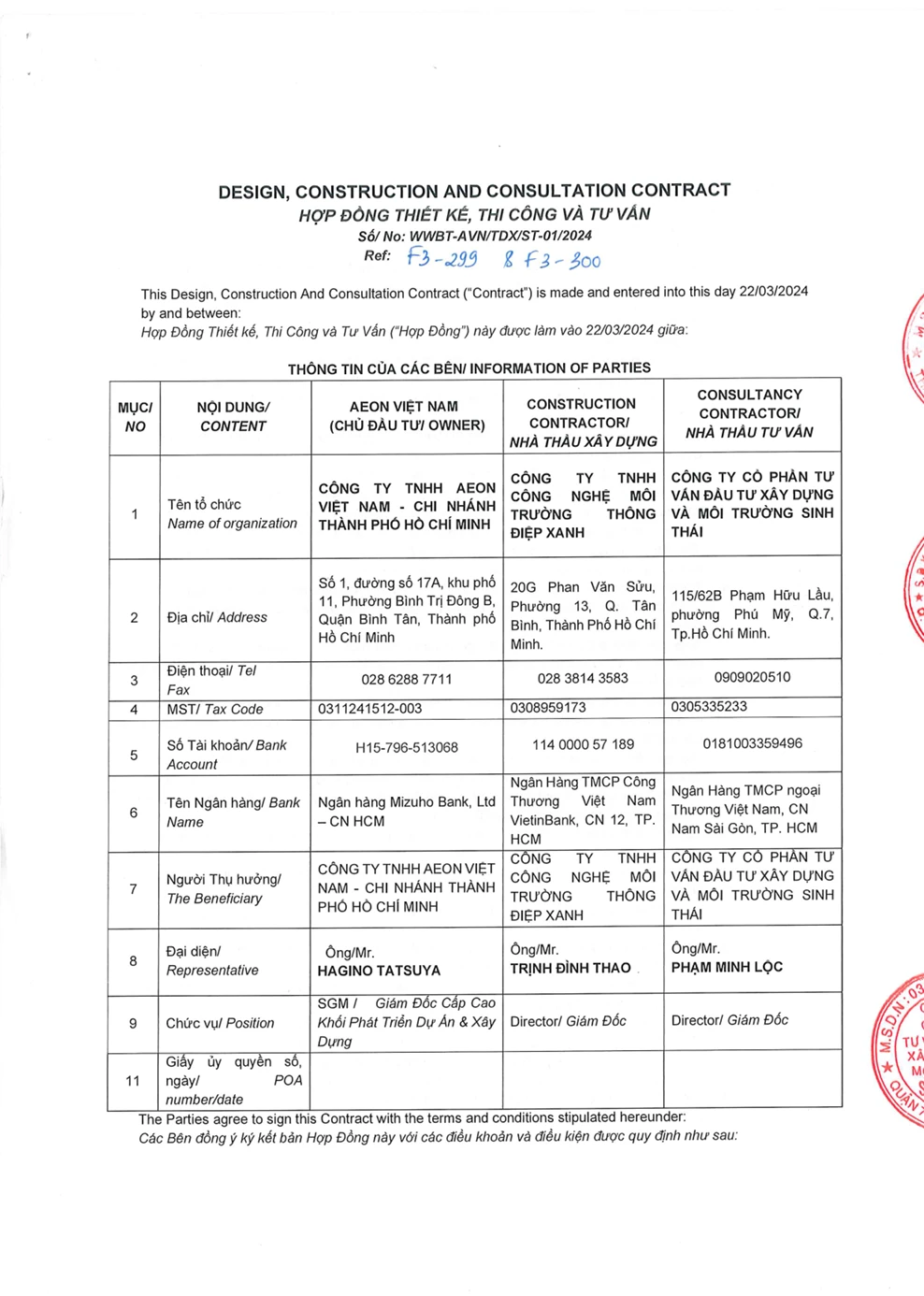 Hợp Đồng Thiết Kế Thi Công Và Tư Vấn Aeon Mall