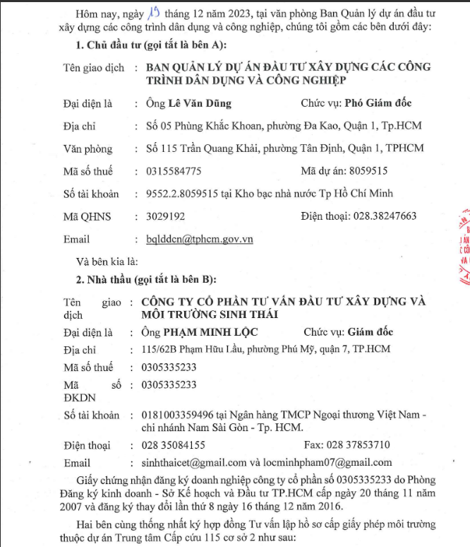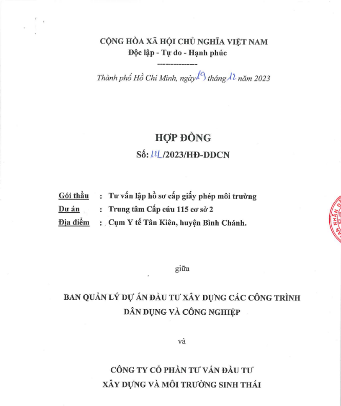 HỢP ĐỒNG DỰ ÁN TRUNG TÂM CẤP CỨU 115 CƠ SỞ 2