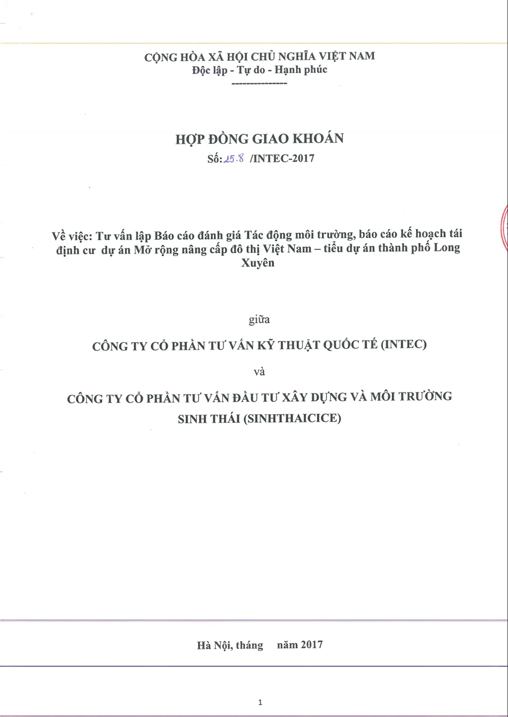 TƯ VẤN LẬP BÁO CÁO ĐÁNH GIÁ TÁC ĐỘNG MÔI TRƯỜNG, BÁO CÁO KẾ HOẠCH TÁI ĐỊNH CƯ DỰ ÁN MỞ RỘNG NÂNG CẤP ĐÔ THỊ VIỆT NAM - TIỂU DỰ ÁN THÀNH PHỐ LONG XUYÊN