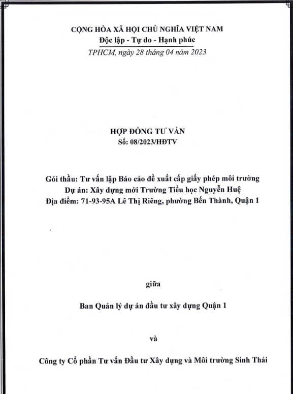 HỢP ĐỒNG DỰ ÁN XÂY DỰNG MÔI TRƯỜNG TRUNG HỌC PHỔ THÔNG BÌNH TRỊ ĐÔNG B, PHƯỜNG BÌNH TRỊ ĐÔNG B, QUẬN BÌNH TÂN